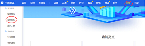 直通车键入目标关键词同样会给出很多相关拓展词,此处也是我们备选关键词词库的源泉。3、生意参谋—市场—搜索分析