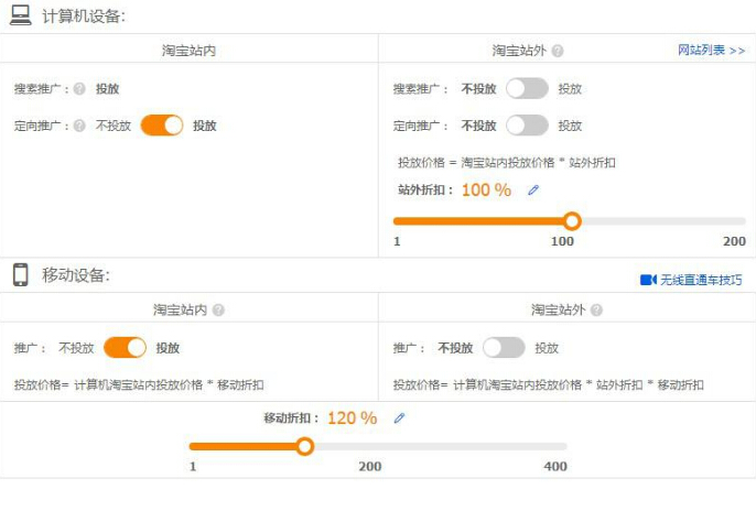 2、目前平台流量大多是无线为主,无线的数据表现要优于电脑端,前期在创建直通车的时候建议掌柜关闭计算机投放(仅限有关闭权限),或者pc端出价0.05元即可。
