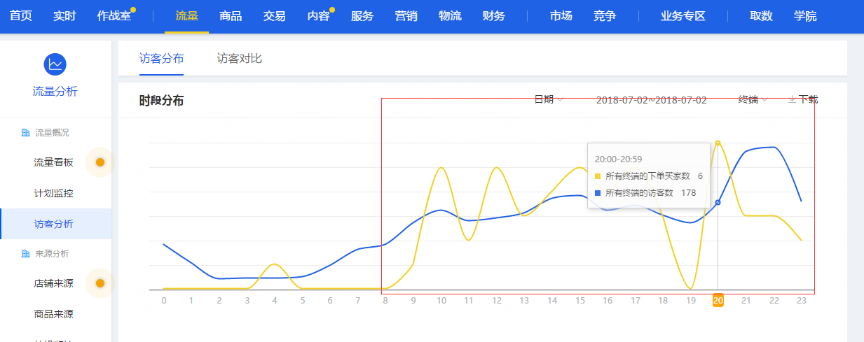 生意参谋-流量-访客分析,看全天24小时时段,转化流量高峰期,针对高转化高分期进行高折扣。