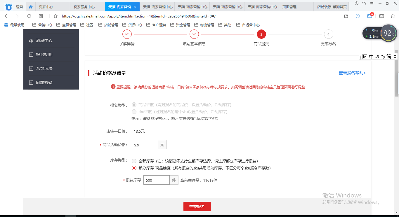 每次报名延后3天,每个排期时间段可报名5款宝贝,最后点击保存即可。